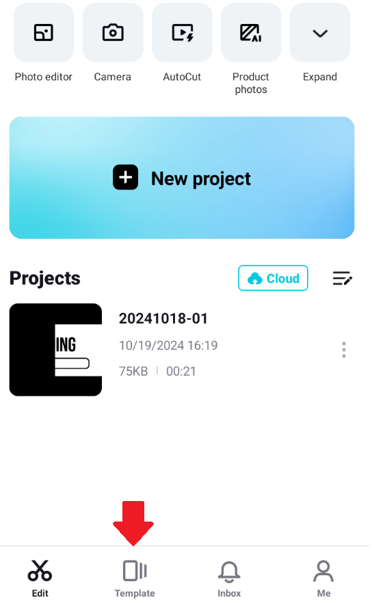 1. Buka Aplikasi CapCut dan Masuk ke Fitur Template
